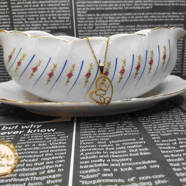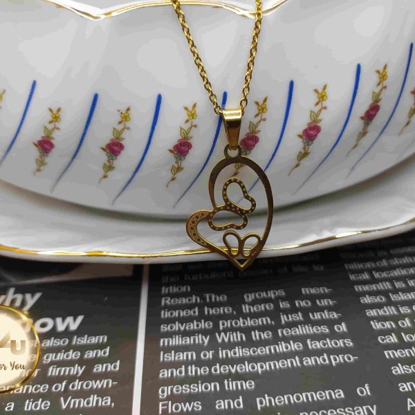 پلاک و زنجیر(آویز)طرح قلب و پروانه-کد:BZPZ10
