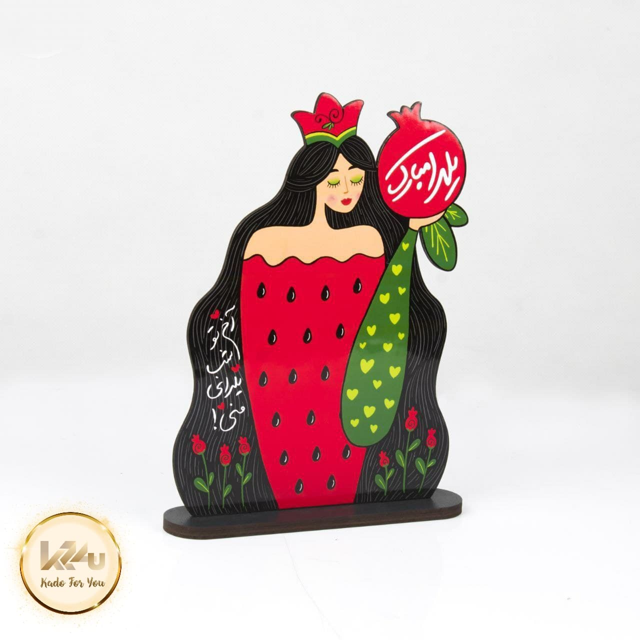 استند چوبی یلدا مبارک طرح دختر گلنار